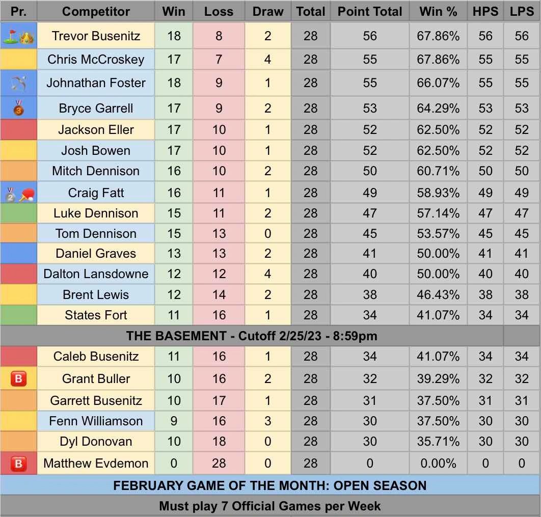 February Leaderboard